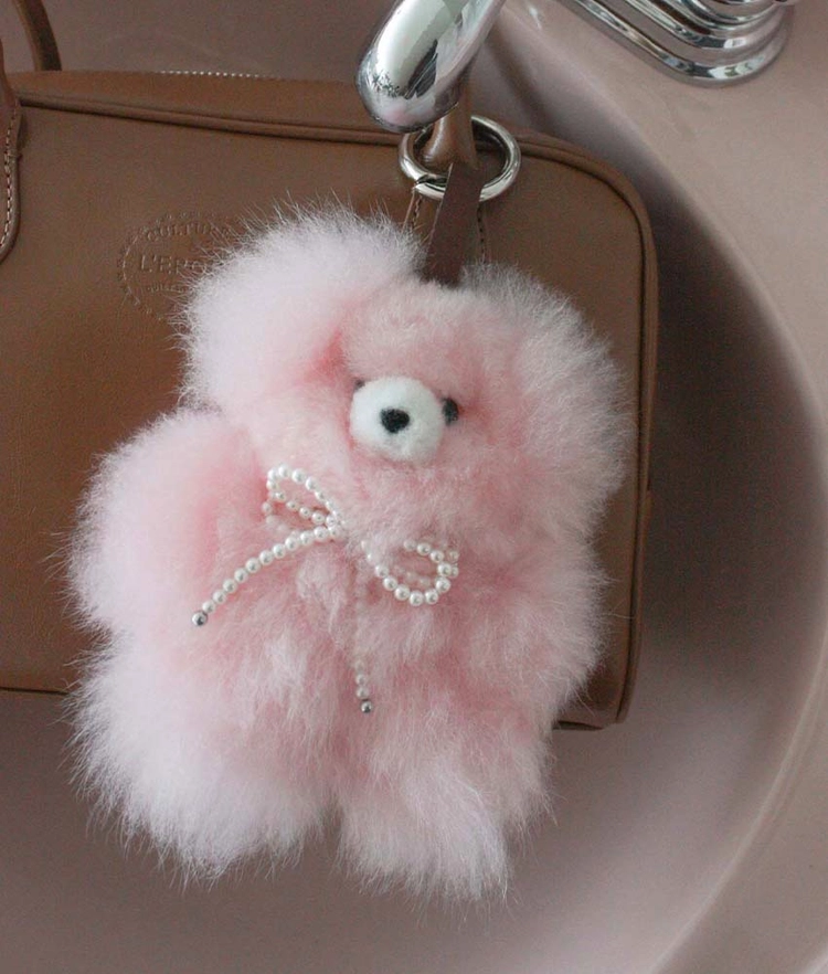 포근한 텍스처와 은은한 진주 디테일이 만난 사랑스러운 핑크 키링💗