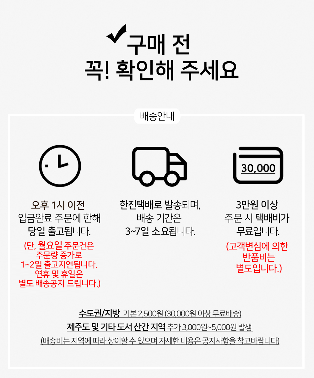 배송비 2,500원 (30,000원 이상 무료배송) / 한진택배