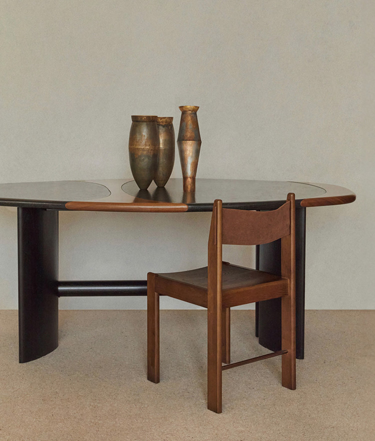 두 소재가 이음새 없이 하나가 되는 섬세한 공예적 기법이 적용된 가구로