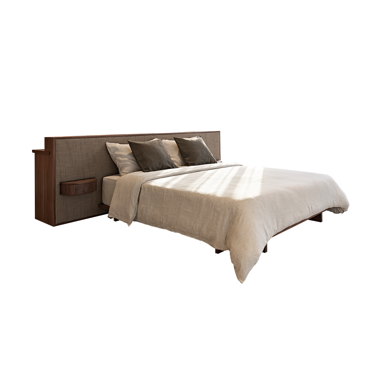 패브릭 헤드의 양옆에 수납장을 더하여