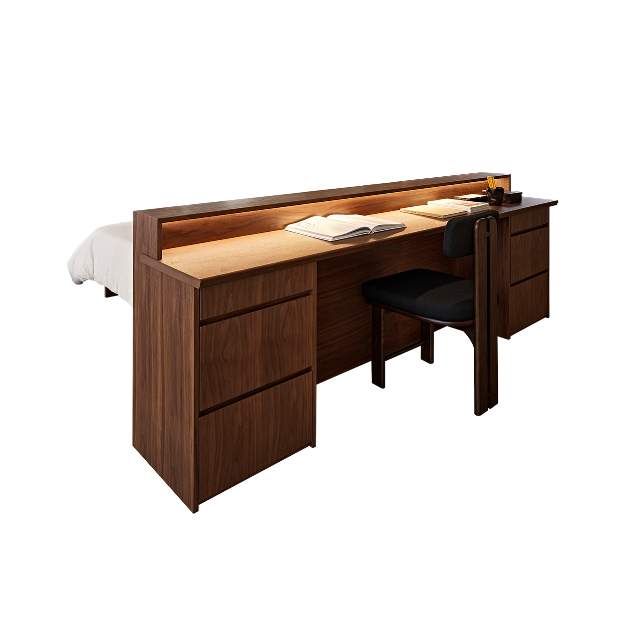 데스크와 침대의 헤드보드가 결합되어