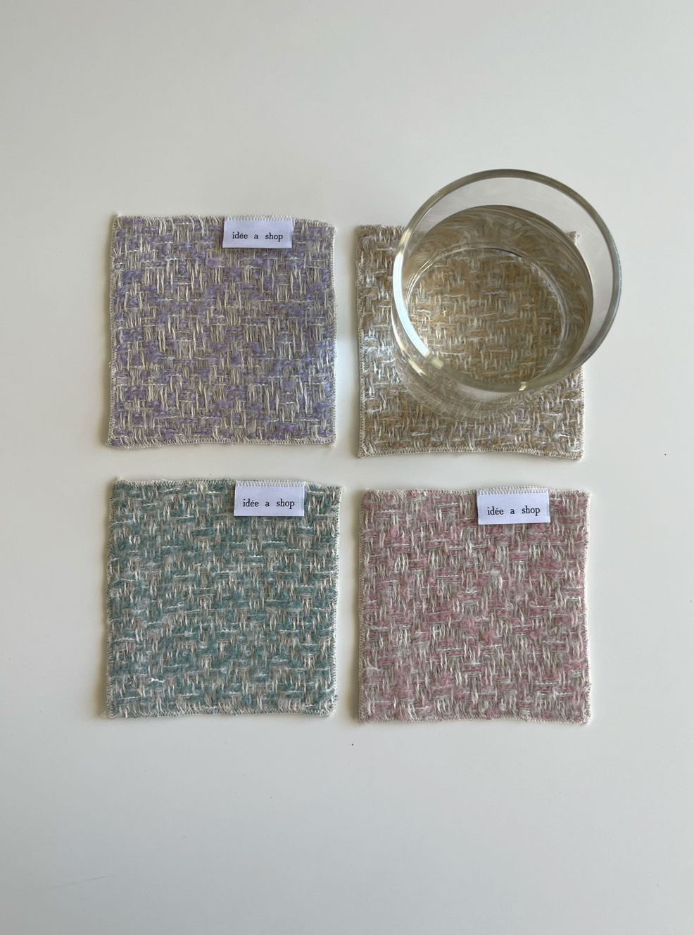 밀크 티 코스터는 도톰하고 푹신한 부클 소재에